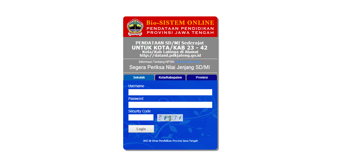 1) Pertama, masuk ke alamat web Propinsi/ Daerah masing masing misalnya saya contohkan di wilayah Jawa tengah, jadi kita masuk ke datasd2.pdkjateng.go.id